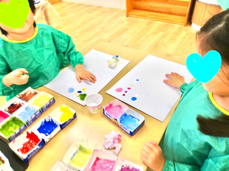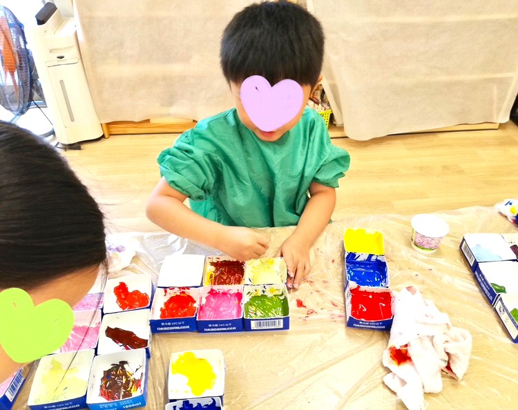 色の違いや、混ざり方に興味津々なたいよう組さん。