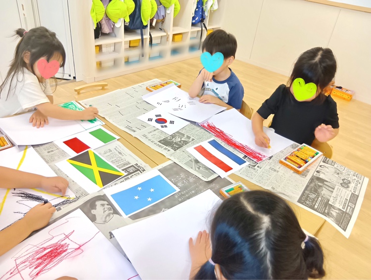 9月の出席シールが国旗のシールだったこともあり、覚えてる子は「これはかんこく!!」「えーっとジャマイカ?」と教えてくれる子も。