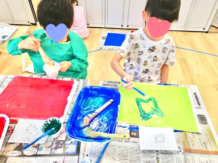 下書きができたら、それを見本にしながら大きな画用紙に描いていきます。