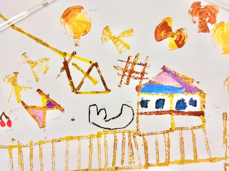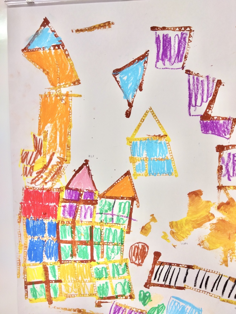 乾いてからクレパスで色を塗ったり、絵も足したりしました。