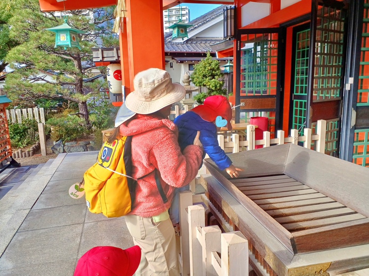 お賽銭をもらうと「ここに入れるの?」と興味津々でお賽銭箱をのぞいていましたよ(^^♪