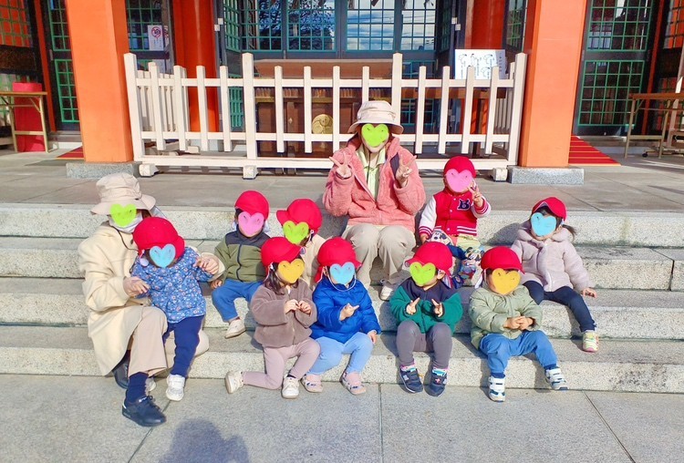 『今年も元気に過ごせますように』とお願いをし、最後に神社の前で集合写真を撮りました!