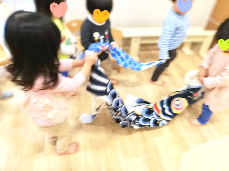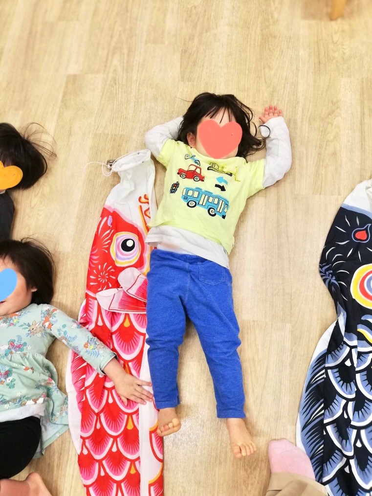 くろーばー組さんはその前にお部屋でこいのぼりを触らせて貰いました♪